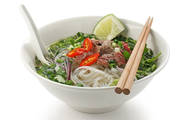 V2 Pho soppa, biff, kyckling, räkor, kalvfond, ingefära, stjärnanis, kanel, basilika, koriander, lime, böngroddar 129:-